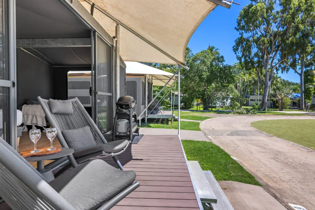 Airlie Beach: the ultimate glamping experienceBreadcrumbHome News & Development Airlie Beach: the ultimate glamping experienceTasman Holiday Parks - Airlie Beach is excited to unveil our luxurious glamping tents, providing guests with a perfect fusion of comfort and adventure set against the stunning backdrop of the Whitsundays.5 Sept 2025 Tasman Holiday Parks – Airlie Beach is thrilled to introduce our luxurious glamping tents, offering a unique blend of comfort and adventure in the heart of the Whitsundays. Located in a quiet corner of the park, these glamping tents provide an extraordinary holiday experience, perfect for both families looking for a unique experience and couples seeking a romantic getaway.Luxury in natureOur glamping tents are designed to offer a luxurious stay with all the amenities you need. Each glamping tent features an open-plan layout with a queen bed and two sets of single bunk beds, comfortably accommodating up to six people. The tents also include a fully equipped kitchen, dining, and lounge area, ensuring you have everything you need for a relaxing stay. Step outside to your private deck, where you can unwind or cook up a storm on the Weber BBQ while enjoying the tropical surroundings.Glamping Tent Kitchen | Tasman Holiday Parks - Airlie BeachPerfect for families and couplesThese glamping tents are perfect for families seeking a unique and memorable holiday. With enough space to comfortably sleep six, families can enjoy the great outdoors without sacrificing the comforts of home. Kids will love the adventure of staying in a tent, while parents can relax knowing they have all the modern amenities they need.For couples, the glamping tents provide a romantic escape. The queen bed offers a cosy retreat, and the private deck is perfect for enjoying a quiet evening together under the stars. The serene surroundings and luxurious accommodation make these glamping tents ideal for a romantic getaway.Glamping Tent | Tasman Holiday Parks - Airlie BeachUnparalleled amenities and facilitiesStaying in our glamping tent means you also have access to a range of high-quality amenities and facilities. Enjoy our resort-style swimming pool, perfect for cooling off after a day of exploring. The park also offers pedal karts, bike riding, and a daily bird feeding experience. For those who enjoy staying connected, high-speed WiFi is available throughout the park.Additional amenities include a modern camp kitchen, amenities blocks, laundry facilities, a play precinct, and BBQ areas for social gatherings. The park also features a kiosk that sells holiday essentials and our friendly reception team can also assist with tour bookings.Resort-Style Swimming Pool | Tasman Holiday Parks - Airlie BeachEndorsed by the expertsYou need a great base to explore The Whitsundays from, but you also don’t want to break the budget. We get it. Enter: Tasman Holiday Parks – Airlie Beach. As highlighted in a recent feature article by Urban List, this park is much more than your average caravan park. Not only are you surrounded by tropical rainforest, but you can also choose from a variety of accommodation options, including luxury glamping tents, tropical villas, premium standalone cabins, motel rooms, camping sites, and premium evergreen ensuite sites. The top pick, according to Urban List? The open-plan glamping tents that sleep up to six people and have all the little luxuries you could want, from the Weber BBQ to air conditioning and a spacious deck.Glamping Tent Front Deck | Tasman Holiday Parks - Airlie BeachBook your stay todayExperience the ultimate glamping adventure at Tasman Holiday Parks – Airlie Beach. Our glamping tents are now available for booking, offering a unique and luxurious camping experience. Visit our website to learn more and book your stay today. Don’t miss out on creating unforgettable memories in one of Australia’s most beautiful destinations.Whether you’re seeking Airlie Beach accommodation or a luxurious stay at an Airlie Beach caravan park, Tasman Holiday Parks has everything you need for the perfect holiday.